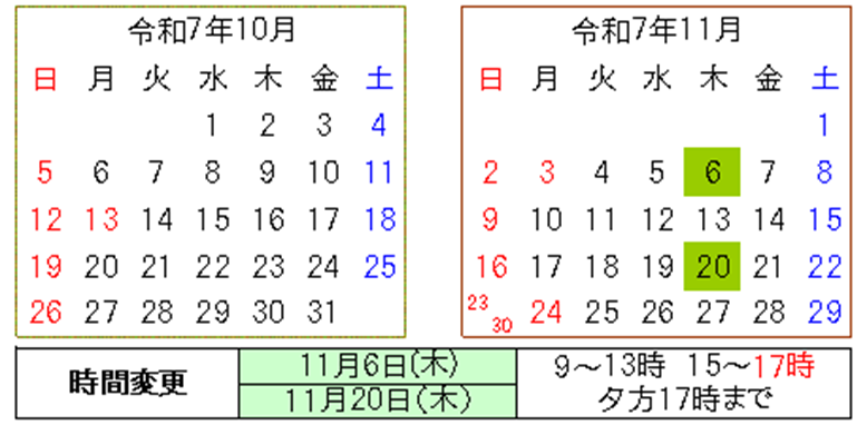 ●カレンダーの日付が赤い日(日曜・祝日)●